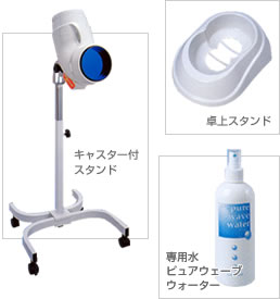 バイオレボリューションの照射口は11.5cmと広く、顔や頭部全部を照射することができます。また、付属のキャスターと卓上スタンドにより、自由な姿勢でリラックスして使用できます。 |